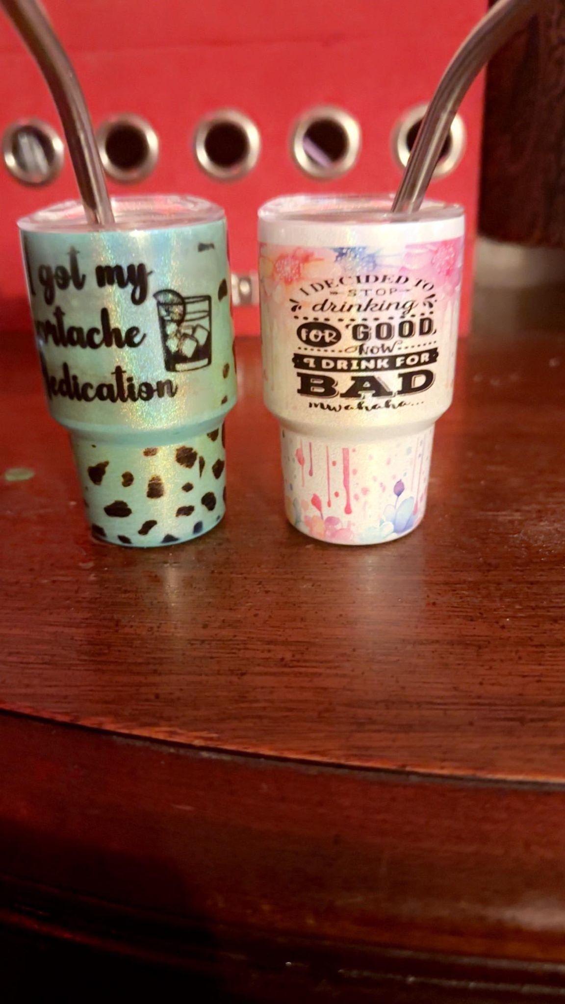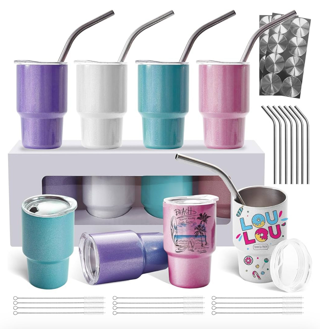 Sip in style with our 3oz Mini Tumbler! This tumbler comes with a lid and straw, perfect for taking shots on the go. Make it your own with a customizable sublimation print. Cheers to fun times ahead!