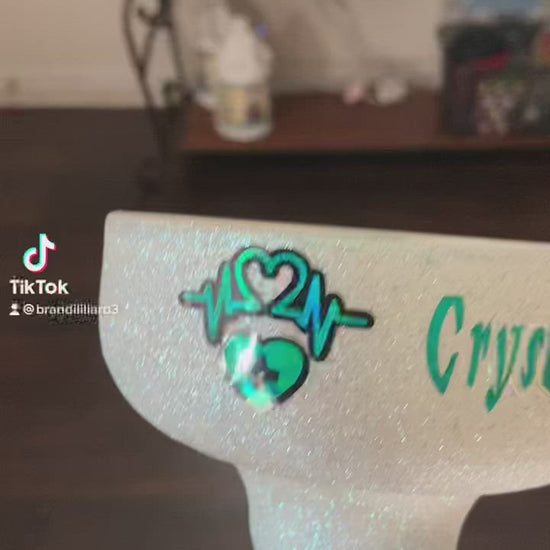 Sip your Margaritas in style with this glitter-infused glass - customized to your own personal tastes! Impress at every gathering and show off your unique flair with this eye-catching and stunning piece.
