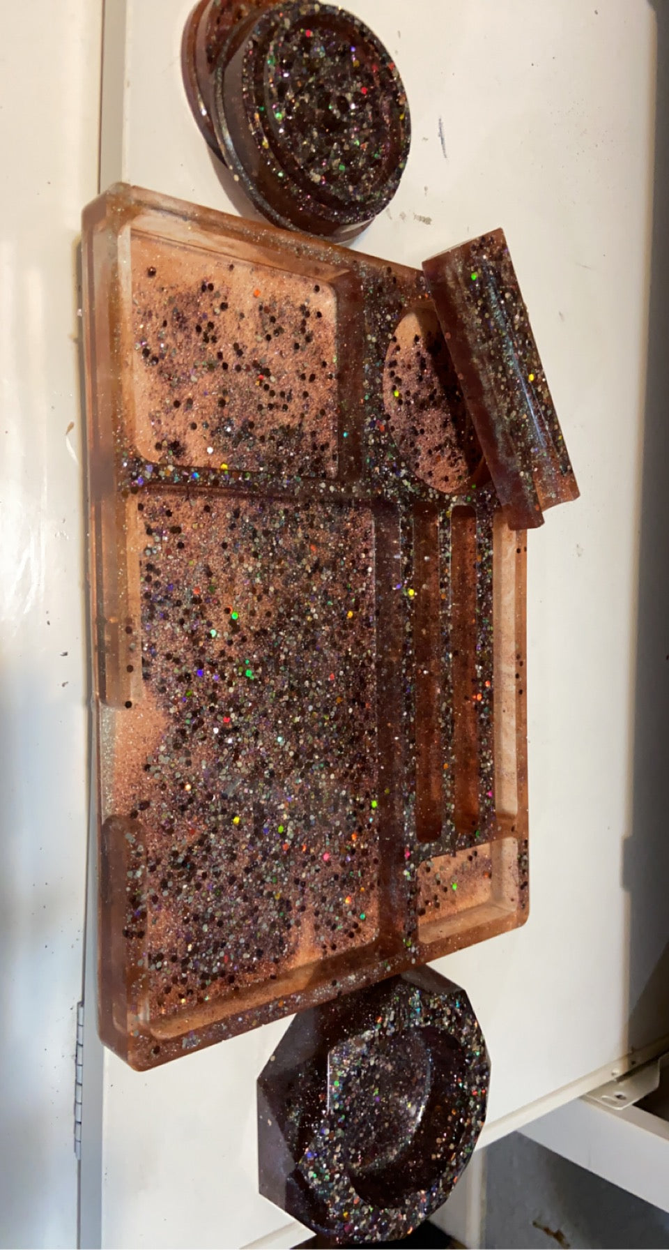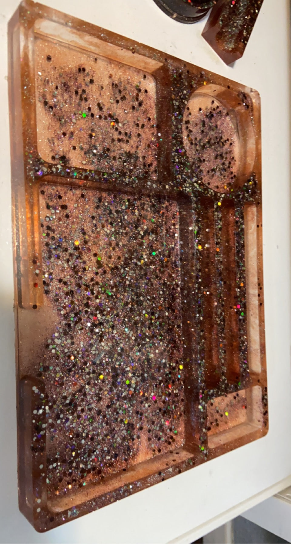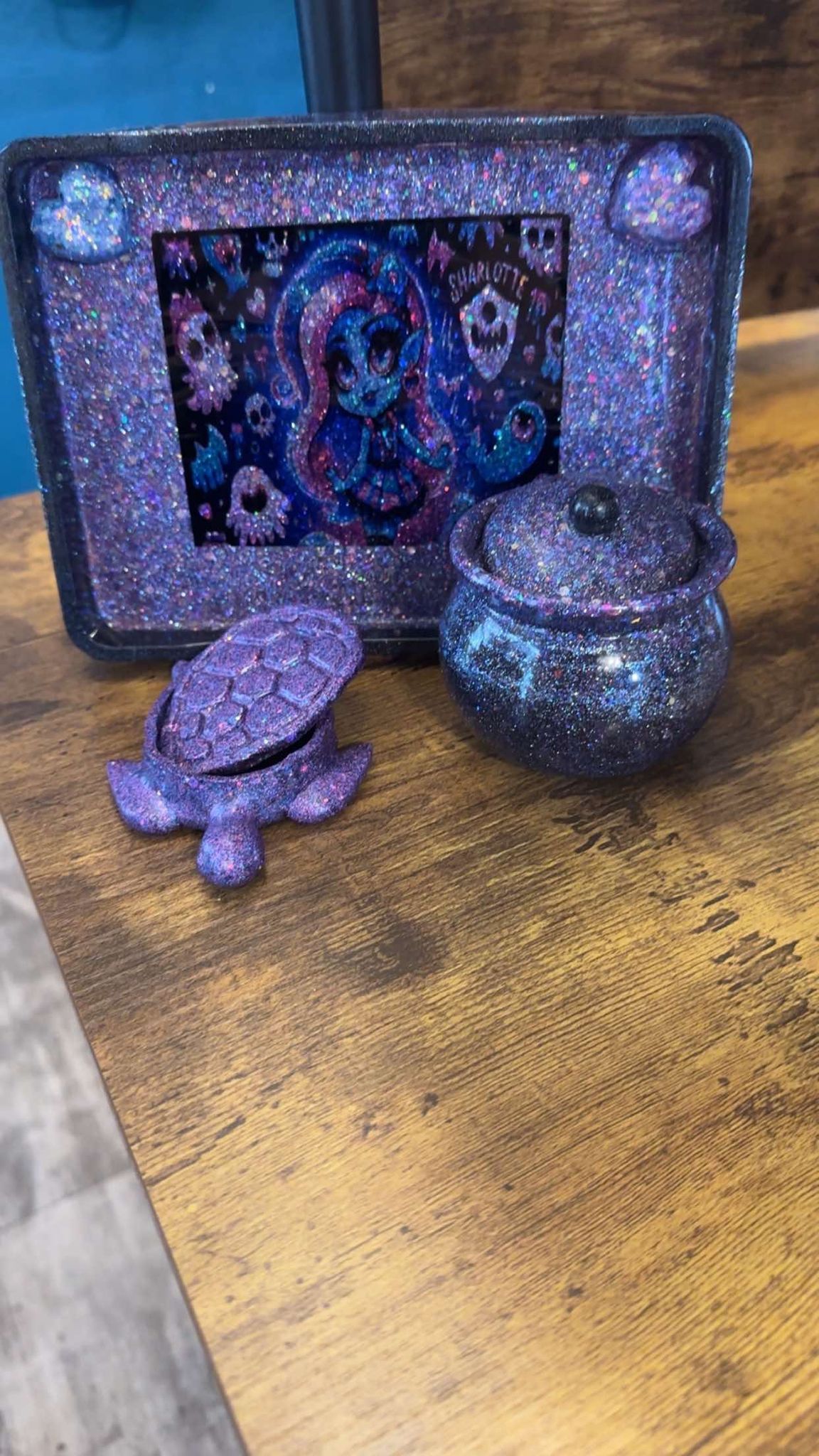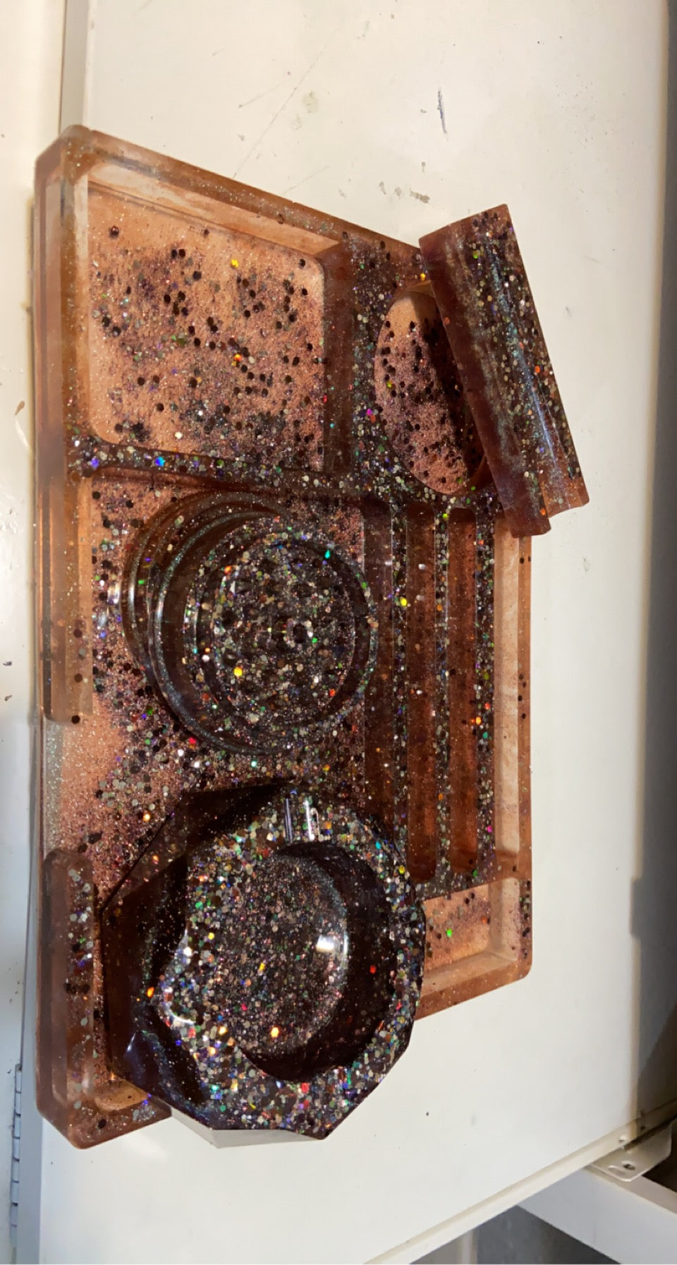 Upgrade your smoking experience with our custom made rolling trays, ash trays, and containers! Our unique glitter alcohol inks, glow in the dark powder, and vinyl designs will add a touch of personality to your smoking setup. Choose from a variety of styles for each product. Elevate your smoking game now!