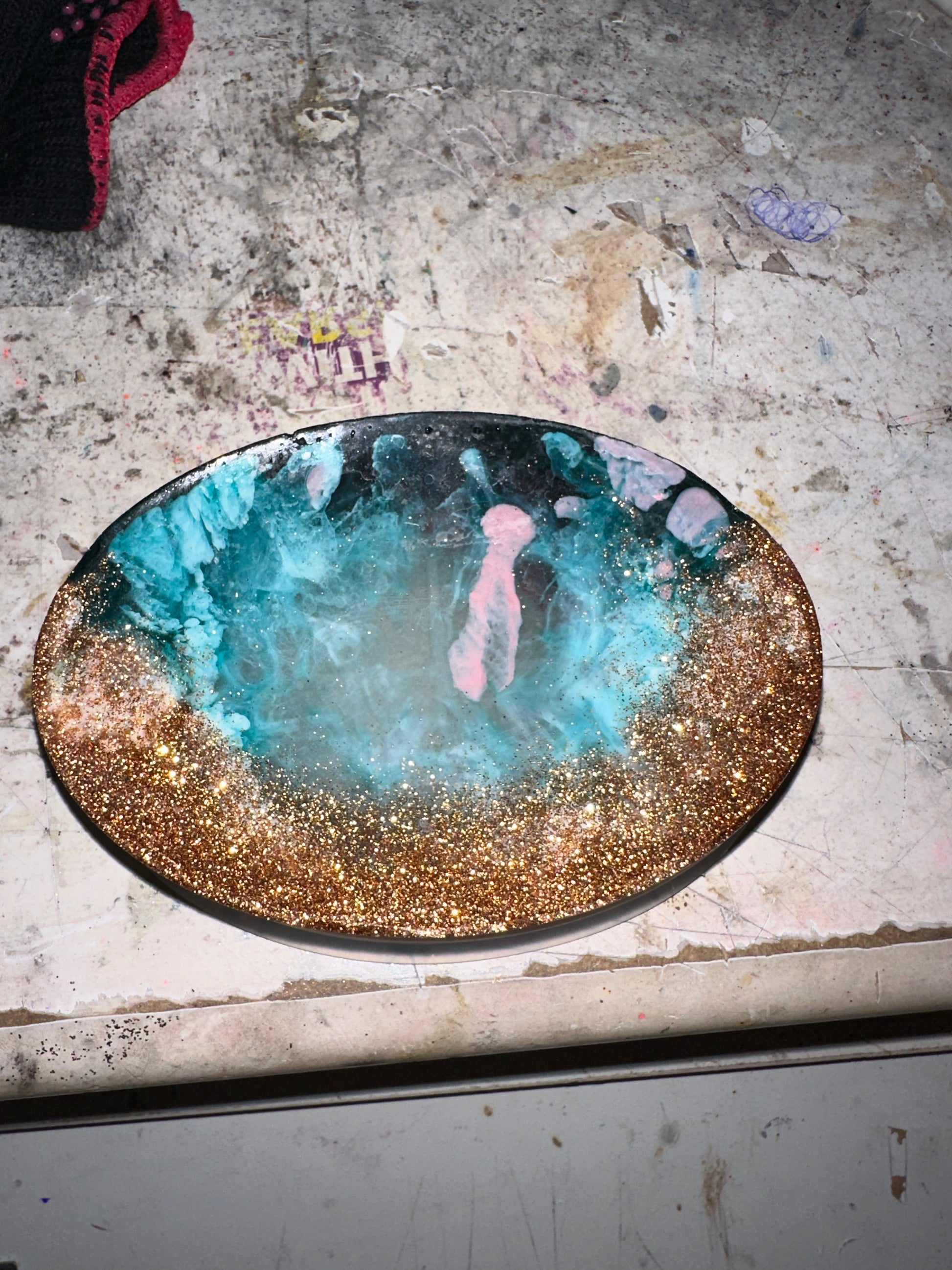 Choose the perfect soap holder for your space! Create one-of-a-kind designs with our custom-built soap holders, offering 3 distinct styles. Each is crafted with epoxy glitters, mica powders, glow powders and alcohol inks for a unique, captivating design!